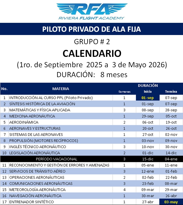 Curso diseñado conforme a la CO SA 14.1-09/R1 (AFAC 17/mar/2020): 510 Horas de Estudios Efectivos (393 Instrucción Teórica y 77 Instrucción Práctica). NOTA: Más 10 horas de Simulador, 40 Horas de Vuelo y 2 horas de Examen.